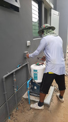 เริ่มเตรียมงานเทพื้นทางเดิน เช็คระดับ ยกฝาท่อ ยกแท้งค์น้ำ , งานเฟอร์นิเจอร์ตีโครงใส่ไม้อัด